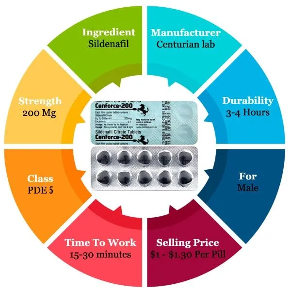 Cenforce 200 mg is manufactured by Centurion Laboratories, it is one of the most sought-after dosages of Sildenafil citrate, especially for the treatment of erectile dysfunction.
